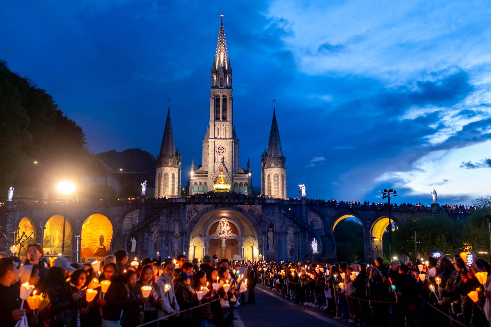 In Lourdes, all celebrations are observed with great reverence: offices, Stations of the Cross, rosaries at the Grotto, and vigils invite everyone to bring their intentions to the Grotto.